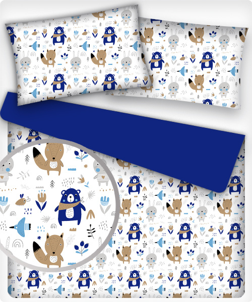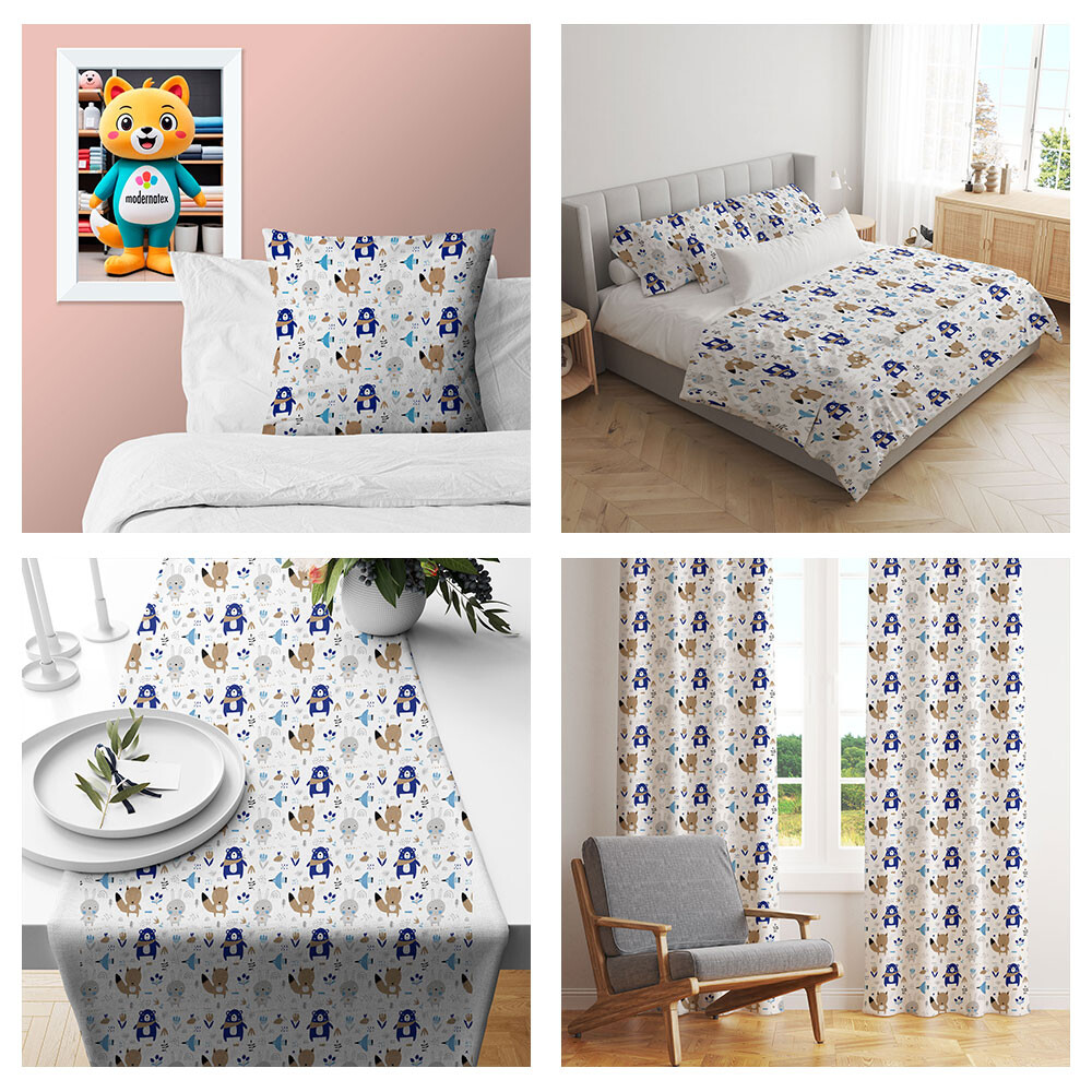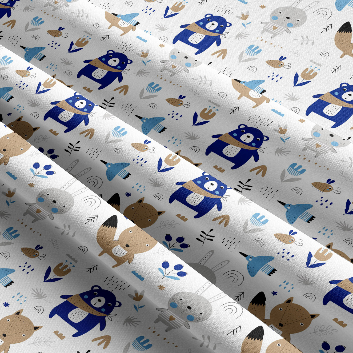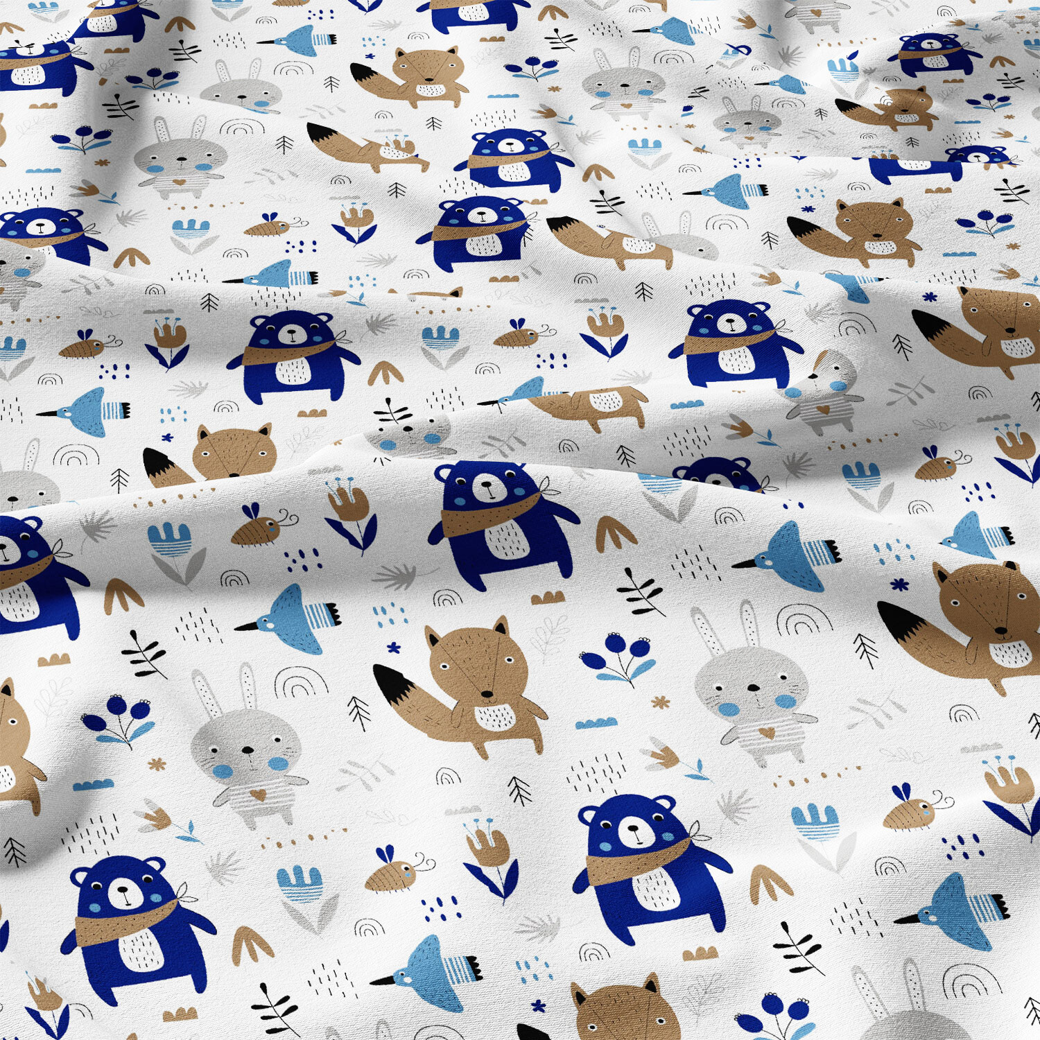 Popis Bavlnená látka vzor veselé modré zvieratká na bielom podklade, metráž 160 cm