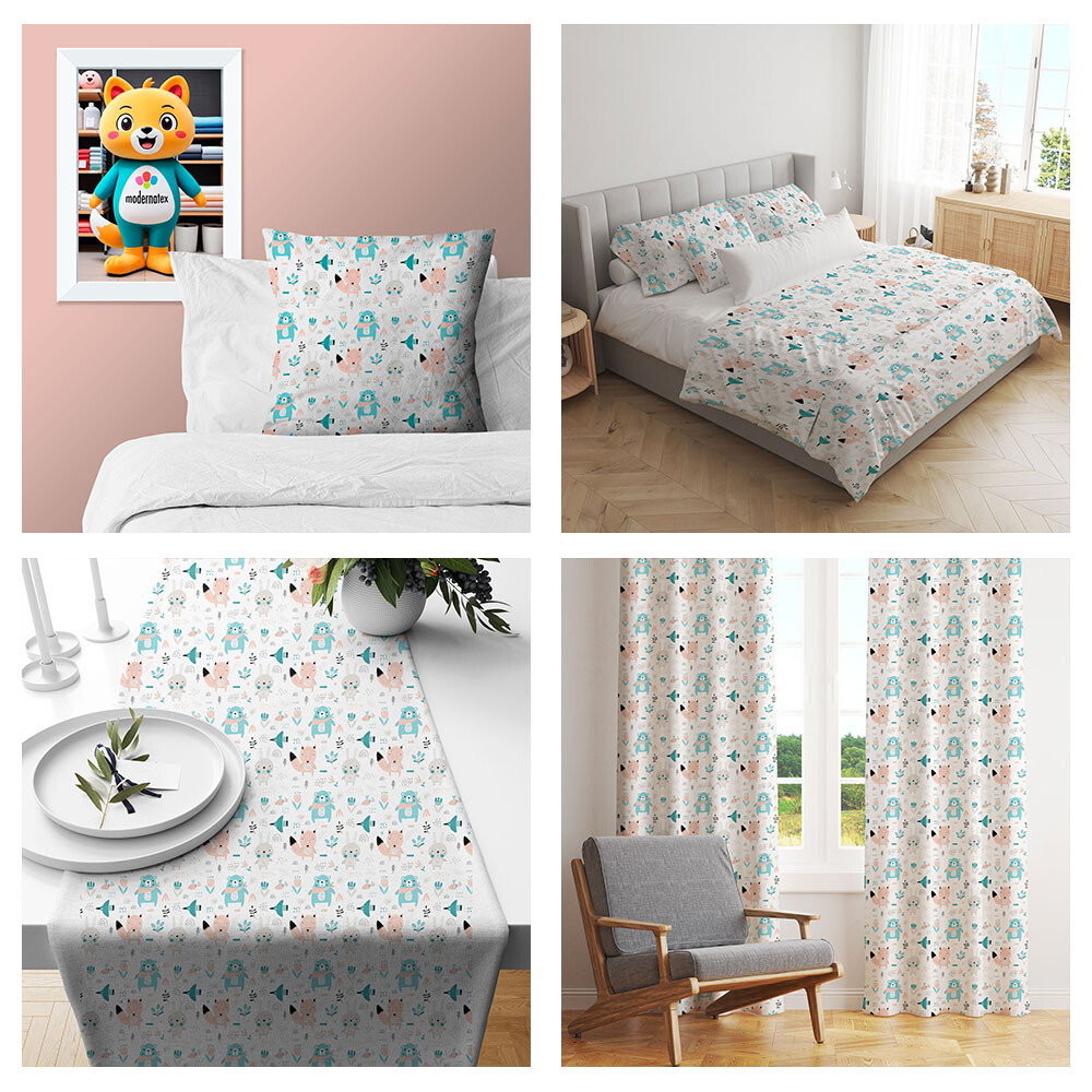 Popis Bavlnená látka vzor veselé tyrkysové zvieratká na bielom podklade, metráž 160 cm