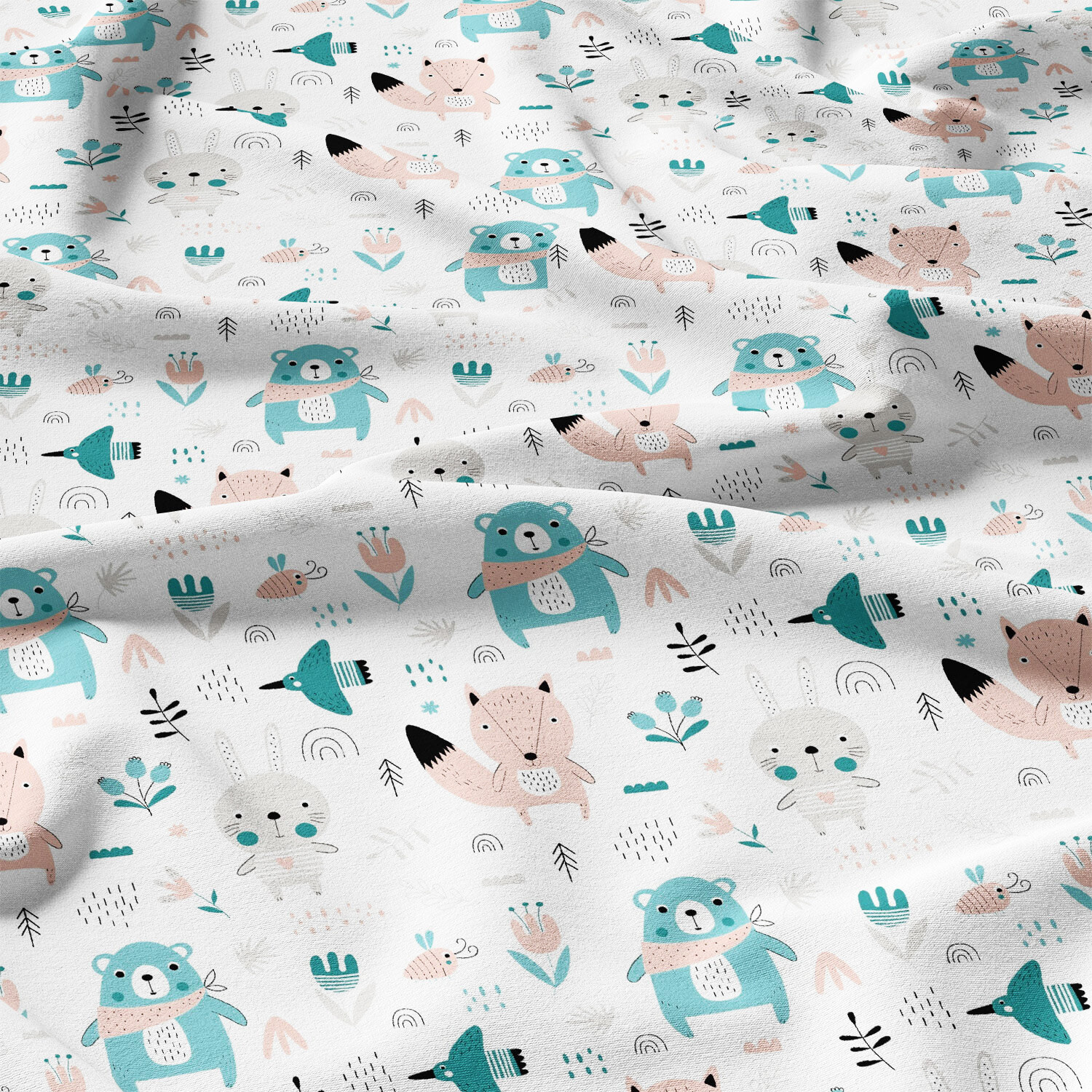 Popis Bavlnená látka vzor veselé tyrkysové zvieratká na bielom podklade, metráž 160 cm