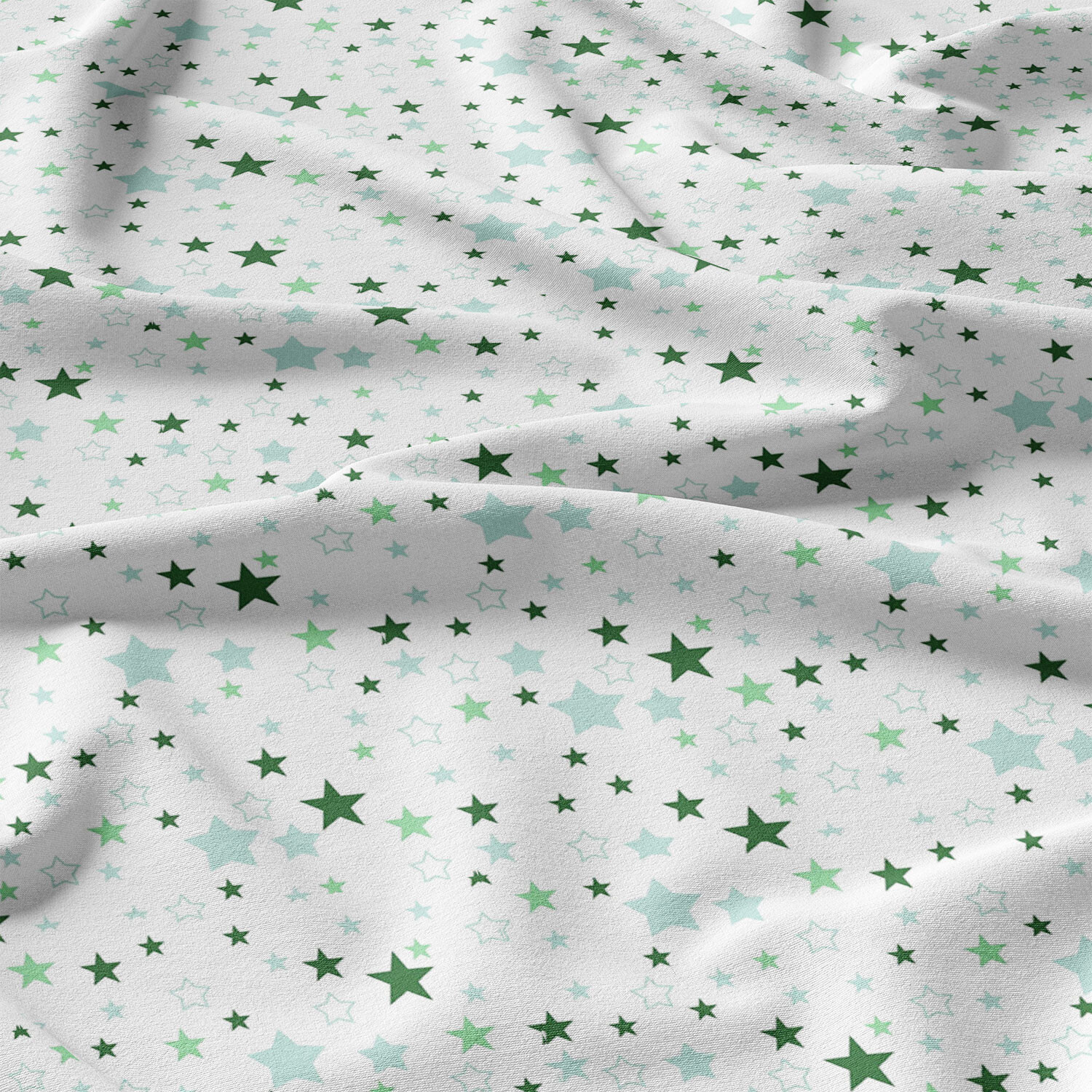 Bavlnená látka vzor zelené hviezdy na bielom podklade, metráž 160 cm