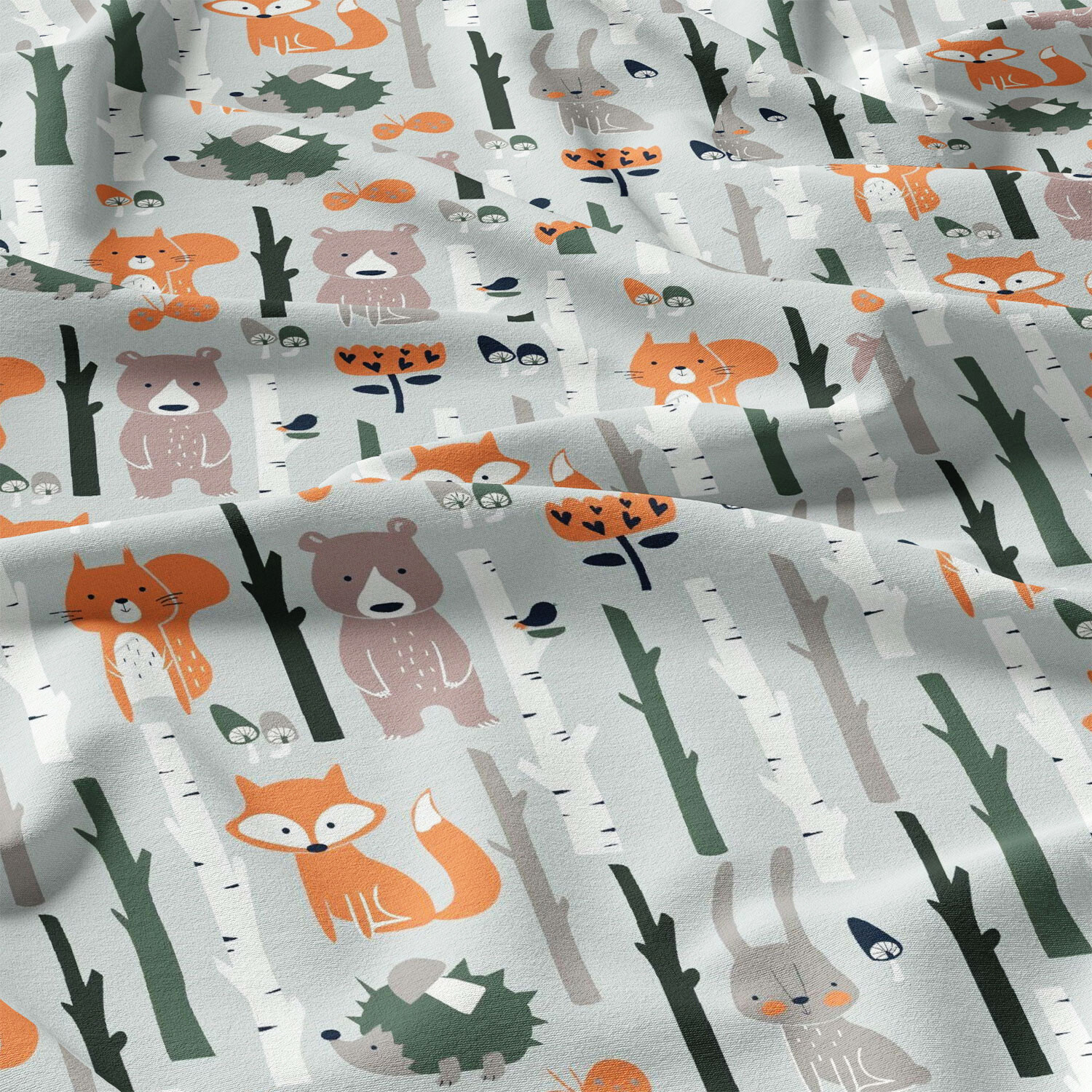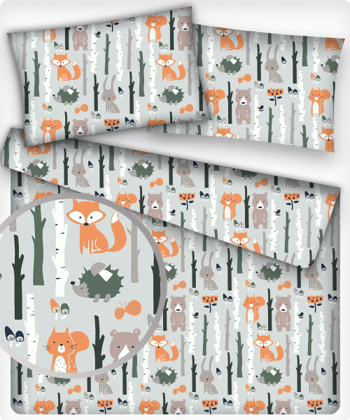 Popis Bavlnená látka vzor zvieratká na šedom podklade, metráž 160 cm