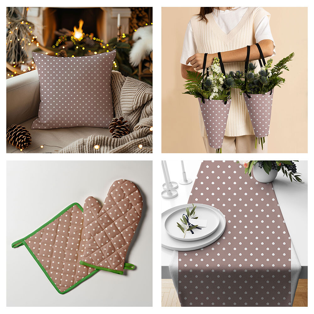 Popis Detská bavlnená látka vzor biela bodka 7 mm, cappuccino podklad, metráž 160 cm