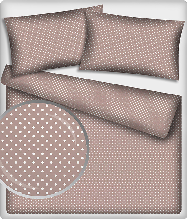 Popis Detská bavlnená látka vzor biela bodka 7 mm, cappuccino podklad, metráž 160 cm