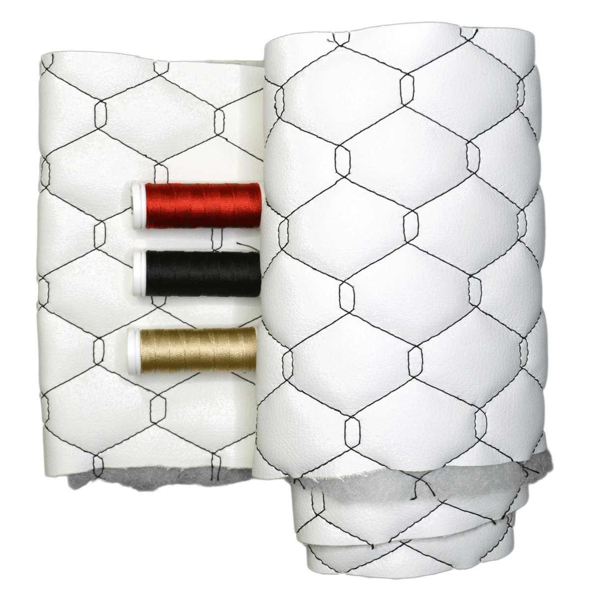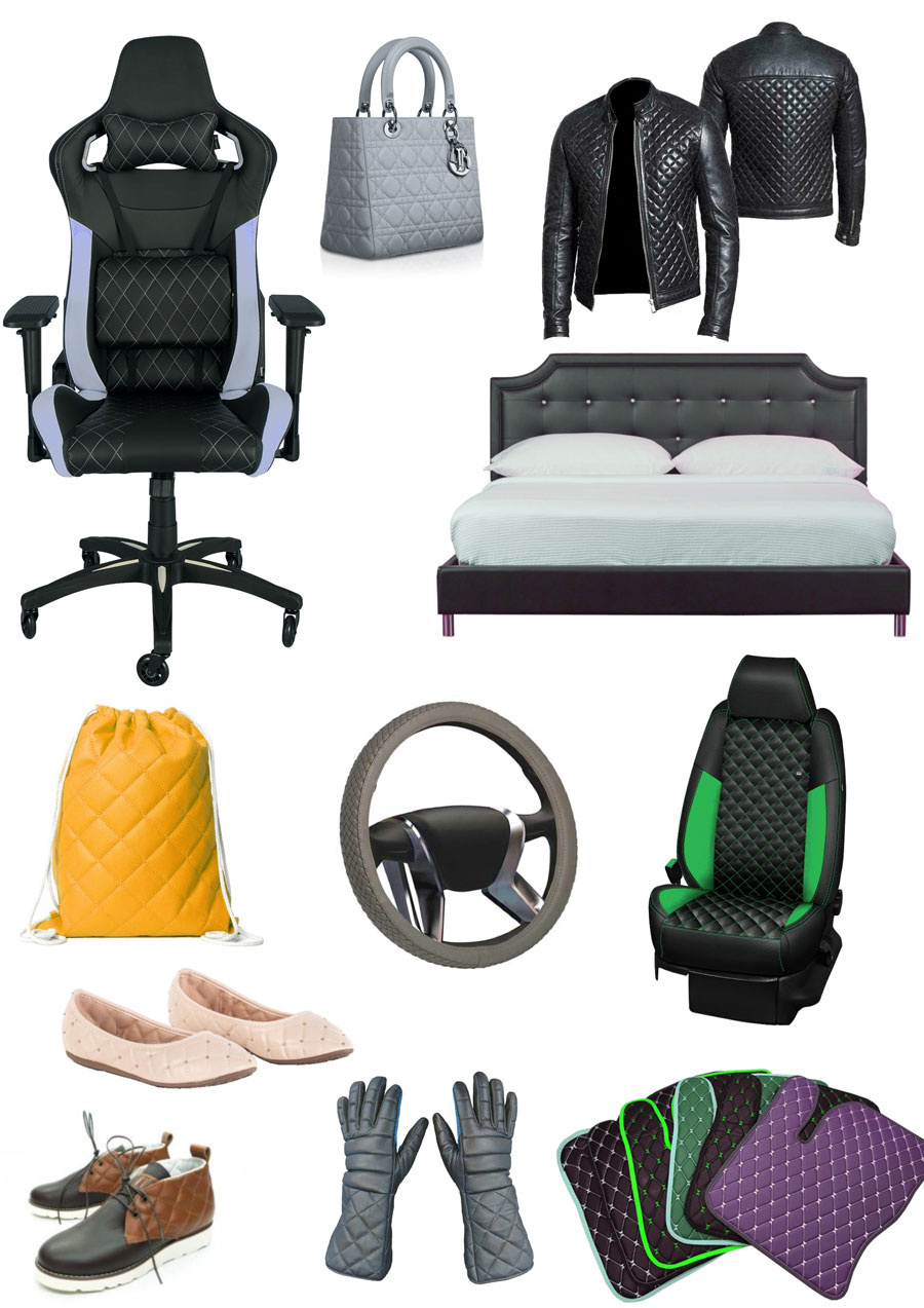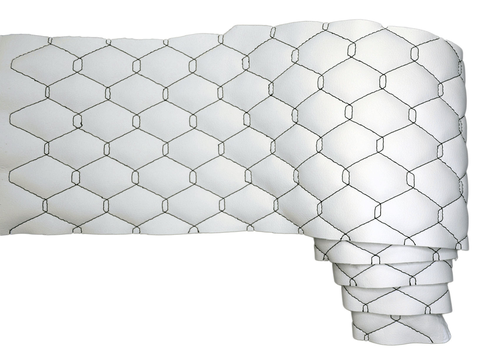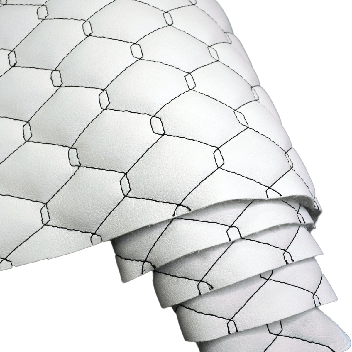 Popis materiálu. Prešívaná ekokoža s polyuretánovým povrchom a polyesterovým základom je moderný čalúnnický materiál, ktorý vyniká elegantným vzhľadom, vysokou odolnosťou a univerzálnym použitím. Štruktúrovaný povrch s dekoračným vzorom 5×5 cm dodáva tkanine atraktívny vzhľad a zvyšuje jej praktické vlastnosti.