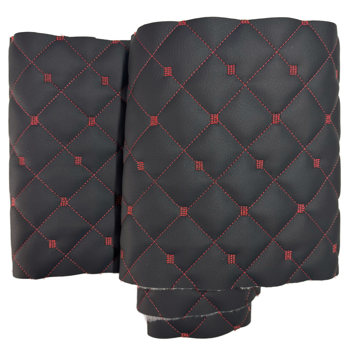 Popis materiálu. Prešívaná ekokoža s polyuretánovým povrchom a polyesterovým základom je moderný čalúnnický materiál, ktorý vyniká elegantným vzhľadom, vysokou odolnosťou a univerzálnym použitím. Štruktúrovaný povrch s dekoračným vzorom 5×5 cm dodáva tkanine atraktívny vzhľad a zvyšuje jej praktické vlastnosti.