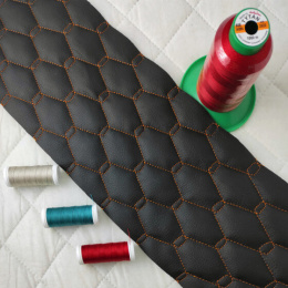 Ekokůže GEO barva černopomeránčová prošívaná nitěmi 1,45 m x 0,85 m