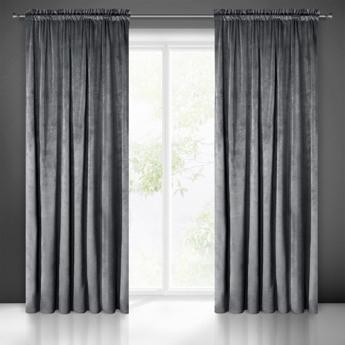 Popis Dekorační velurový závěs s řasící páskou GRAFIT 140x270 cm