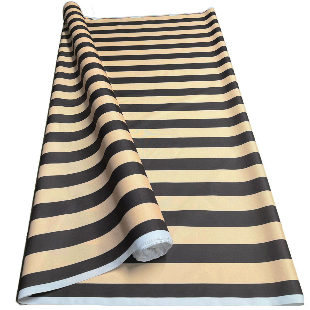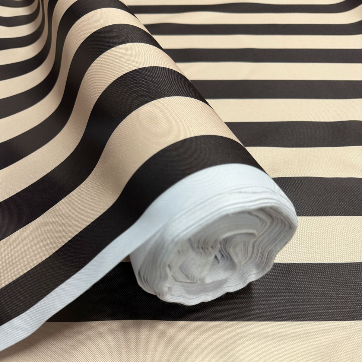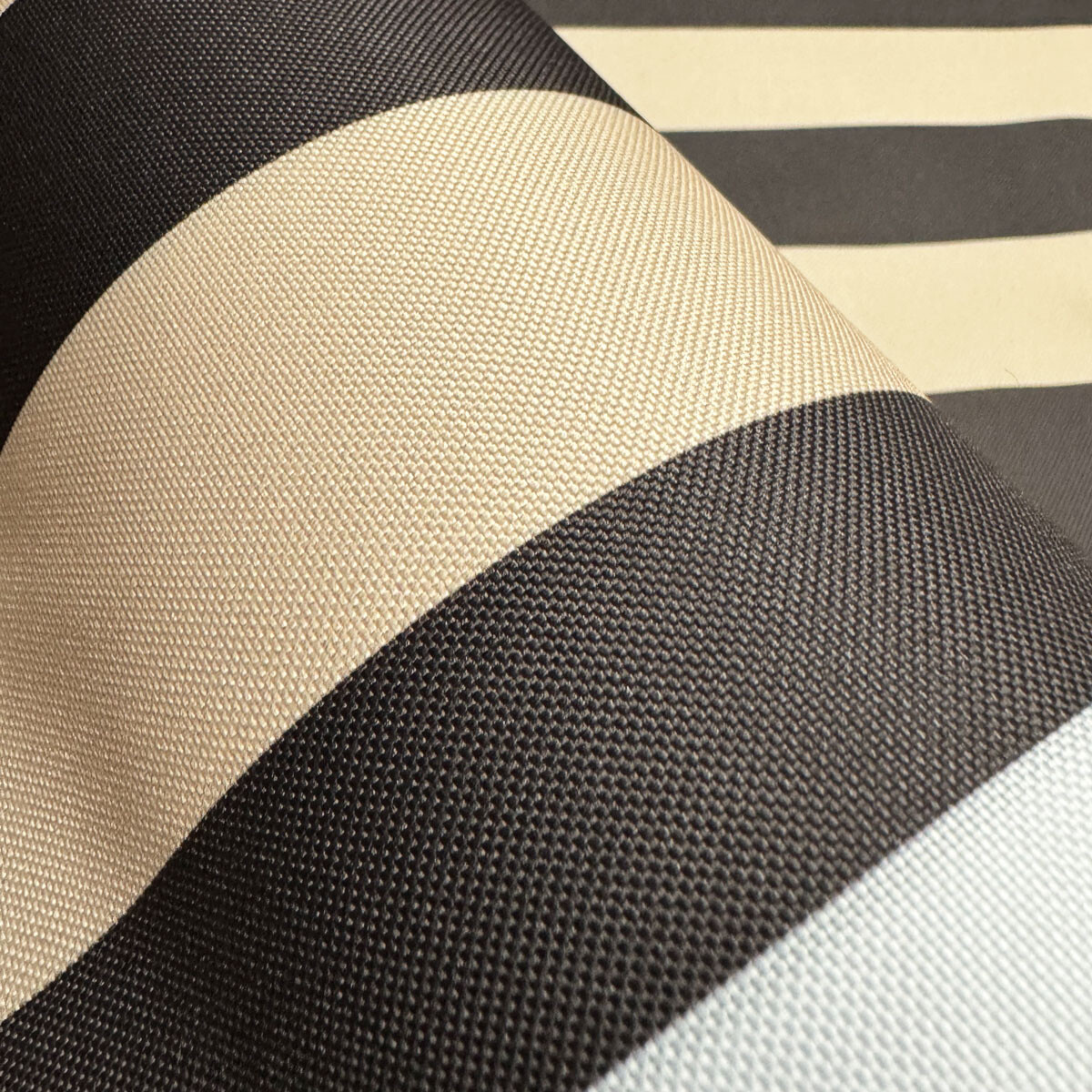 Popis Látka do exteriéru na zahradné lehátka a húpacie siete, farba béžovo-čokoládová, prúžok 5 cm