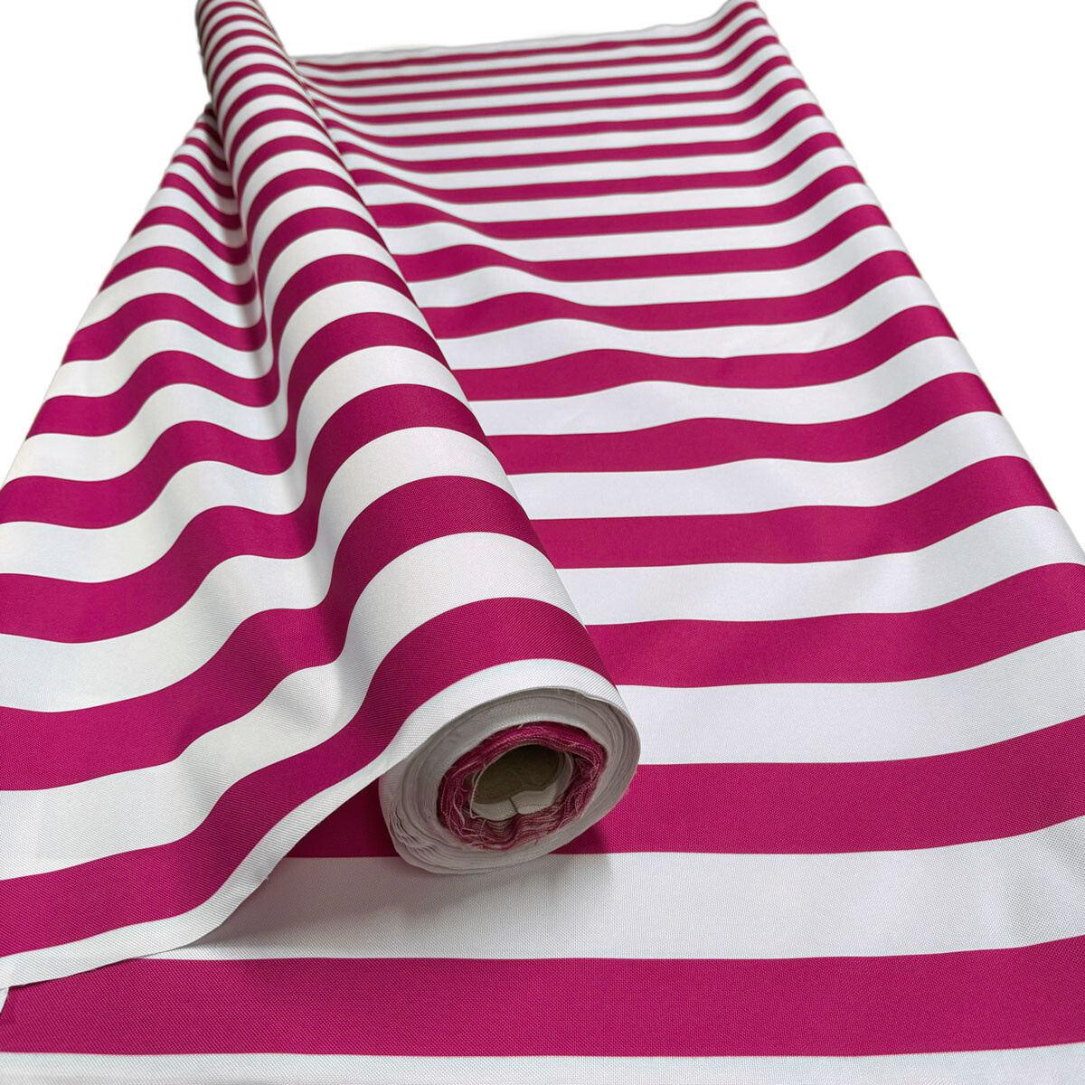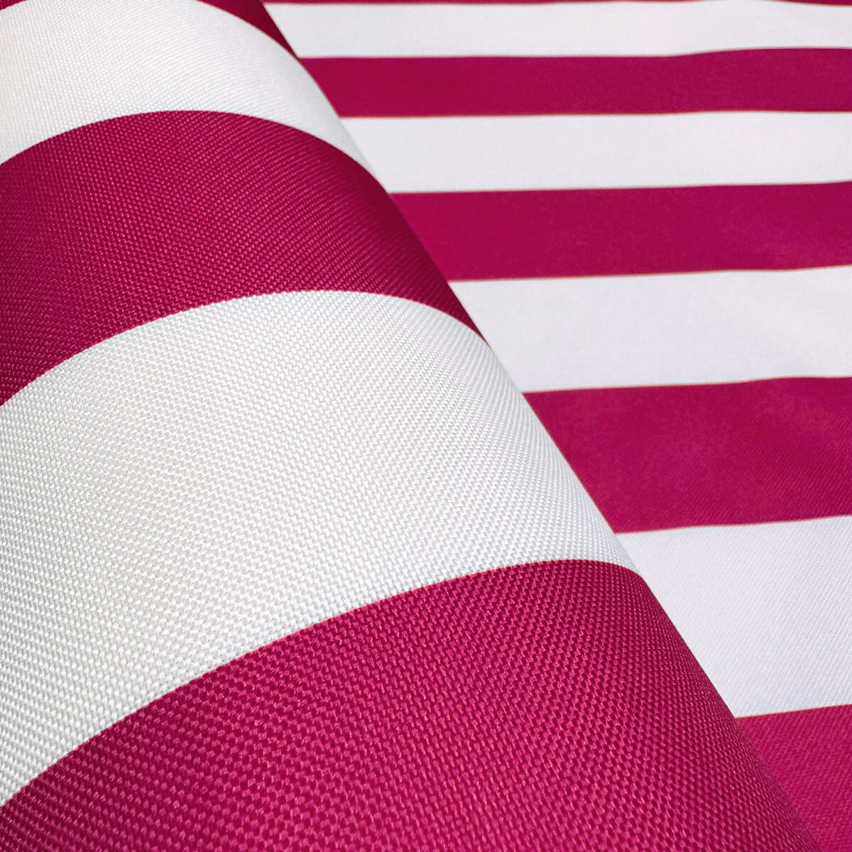 Popis Látka do exteriéru na zahradné lehátka a húpacie siete, farba bielo-amarantová, prúžok 5 cm