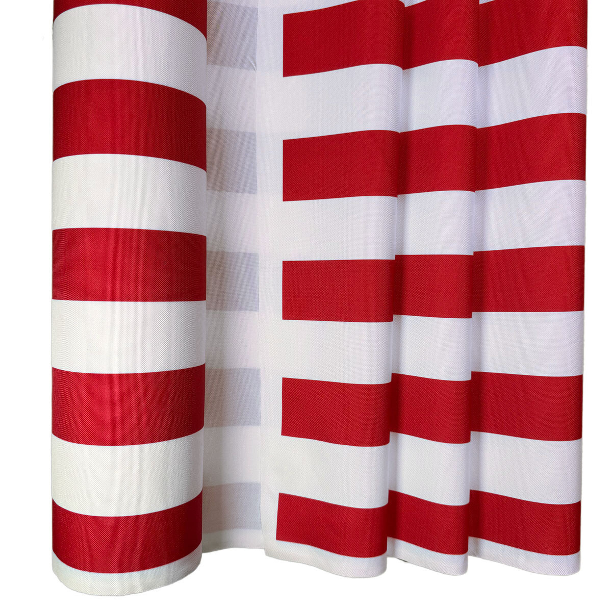 Popis Látka do exteriéru na zahradné lehátka a húpacie siete, farba bielo-červená, prúžok 5 cm