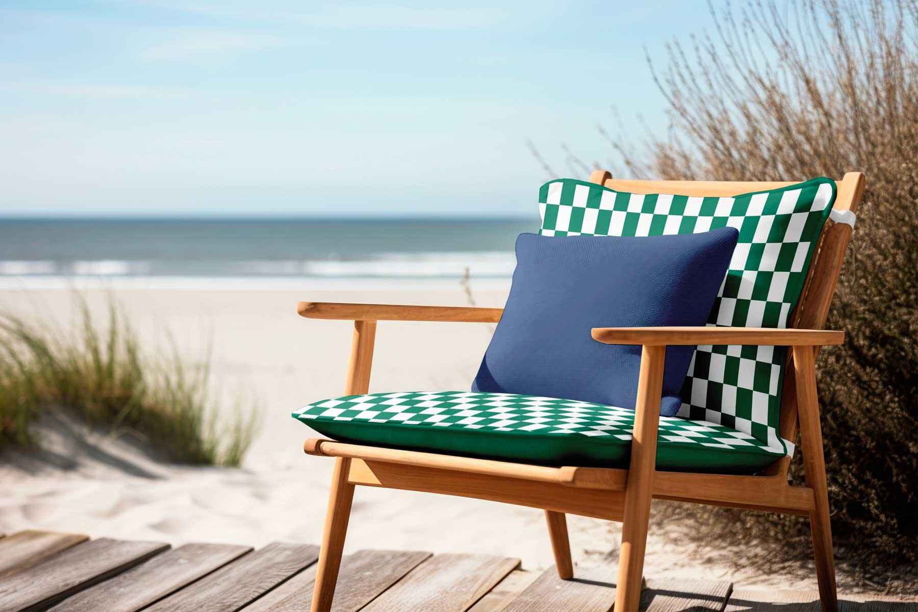 Popis Látka do exteriéru na zahradné lehátka a húpacie siete, farba Bielo-Ultrmarine Šachovnica 5x10 cm
