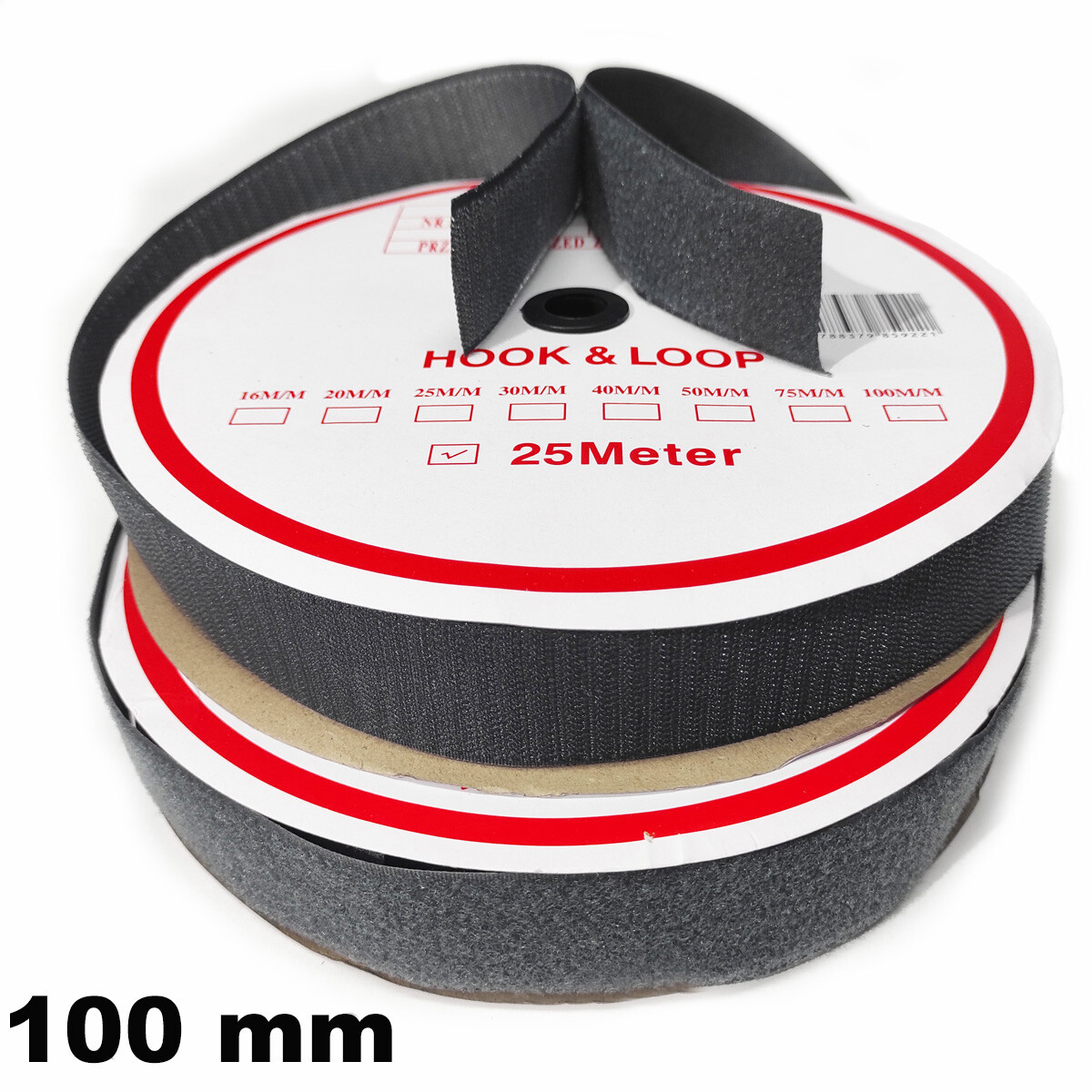 Pásek na suchý zip našívací HÁČEK a SMYČKA SET grafit 100 mm x 25 bm