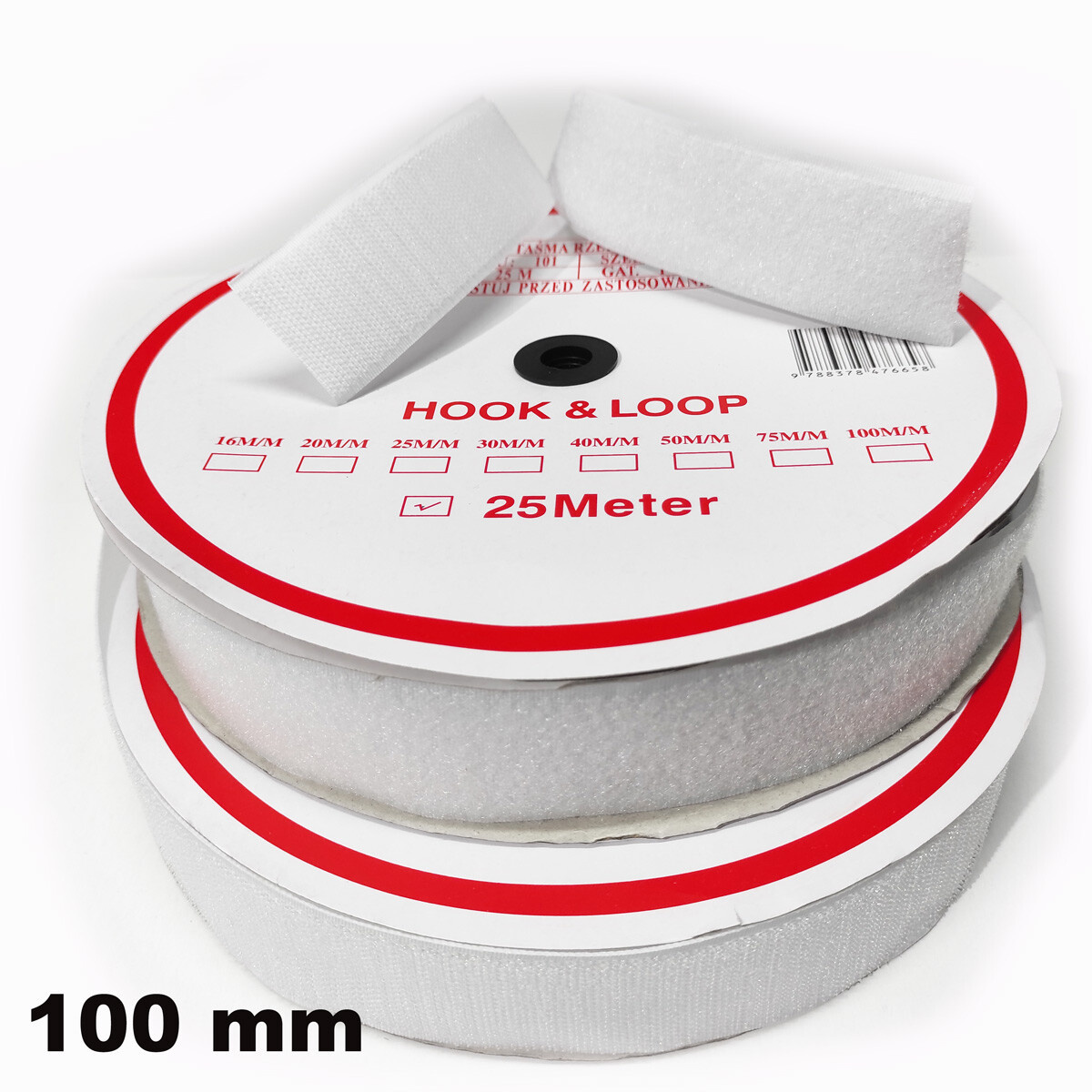 Popis Pásik na suchý zips našívací, set háčika a slučky, farba biela 100 mm x 25 bm