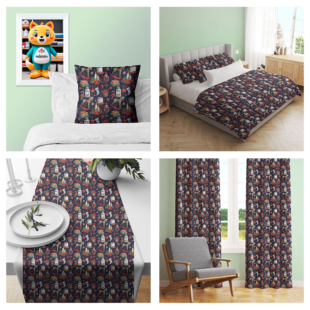 Táto látka je oživená krásnym vianočným vzorom, ktorý pridá čaro sviatkov k akémukoľvek projektu. Je to skvelá voľba pre výrobu obliečok, obrusov, závesov, ubrusov, domácich dekorácií a ďalších ručne vyrábaných výrobkov.