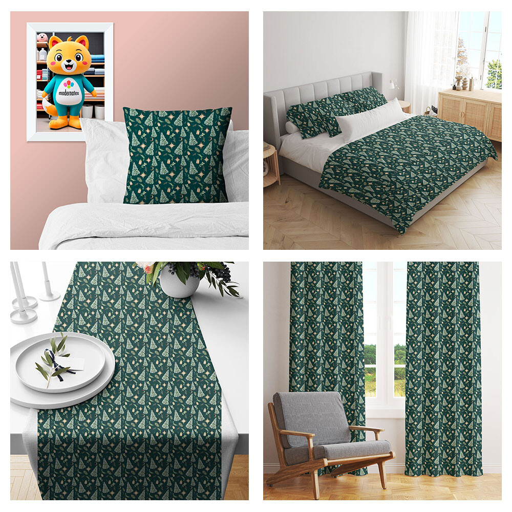 Popis Vianočný vzor bavlnenej látky Vianoce, farba zelená, metráž 160 cm