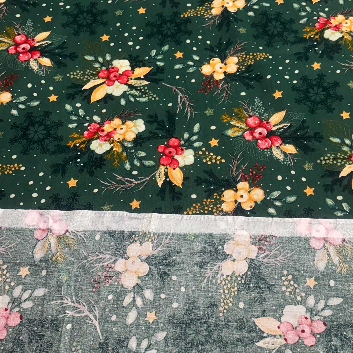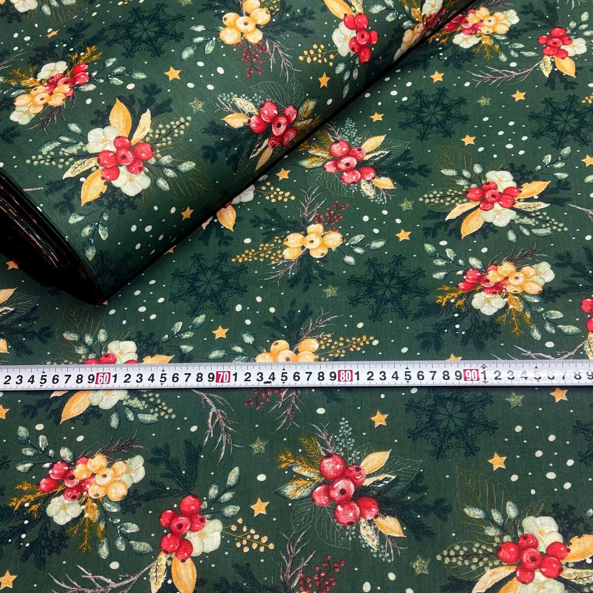 Táto látka je oživená krásnym vianočným vzorom, ktorý pridá čaro sviatkov k akémukoľvek projektu. Je to skvelá voľba pre výrobu obliečok, obrusov, závesov, ubrusov, domácich dekorácií a ďalších ručne vyrábaných výrobkov.
