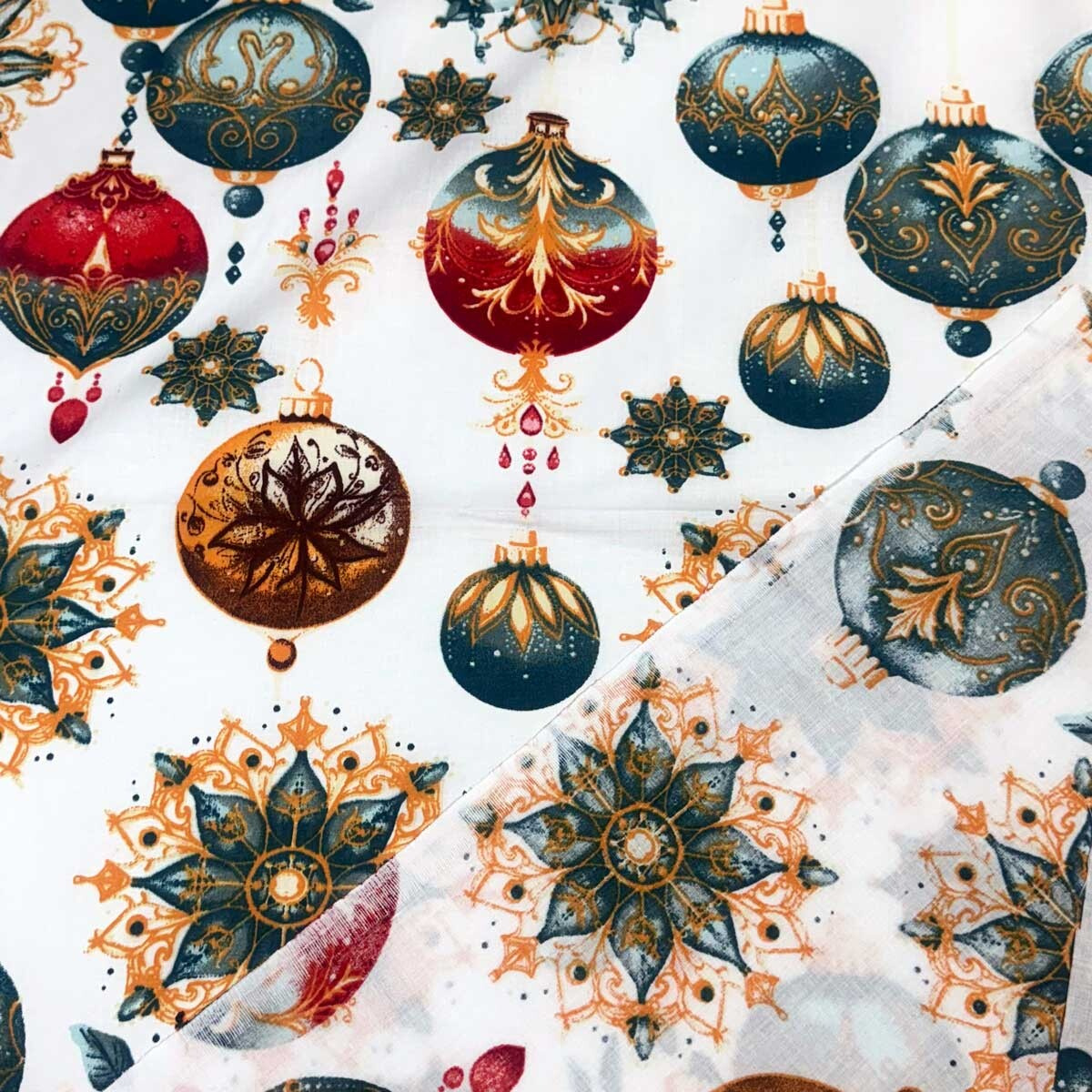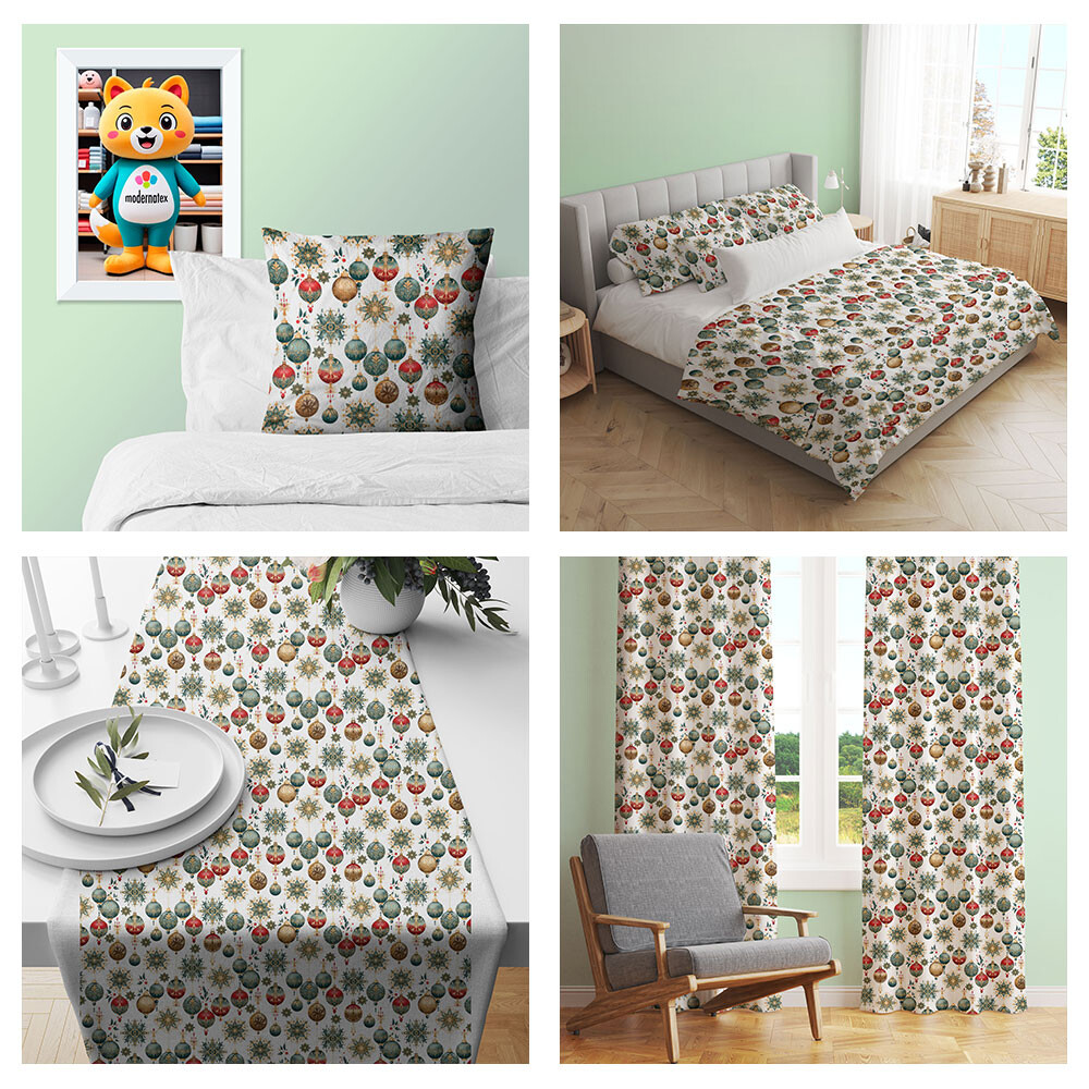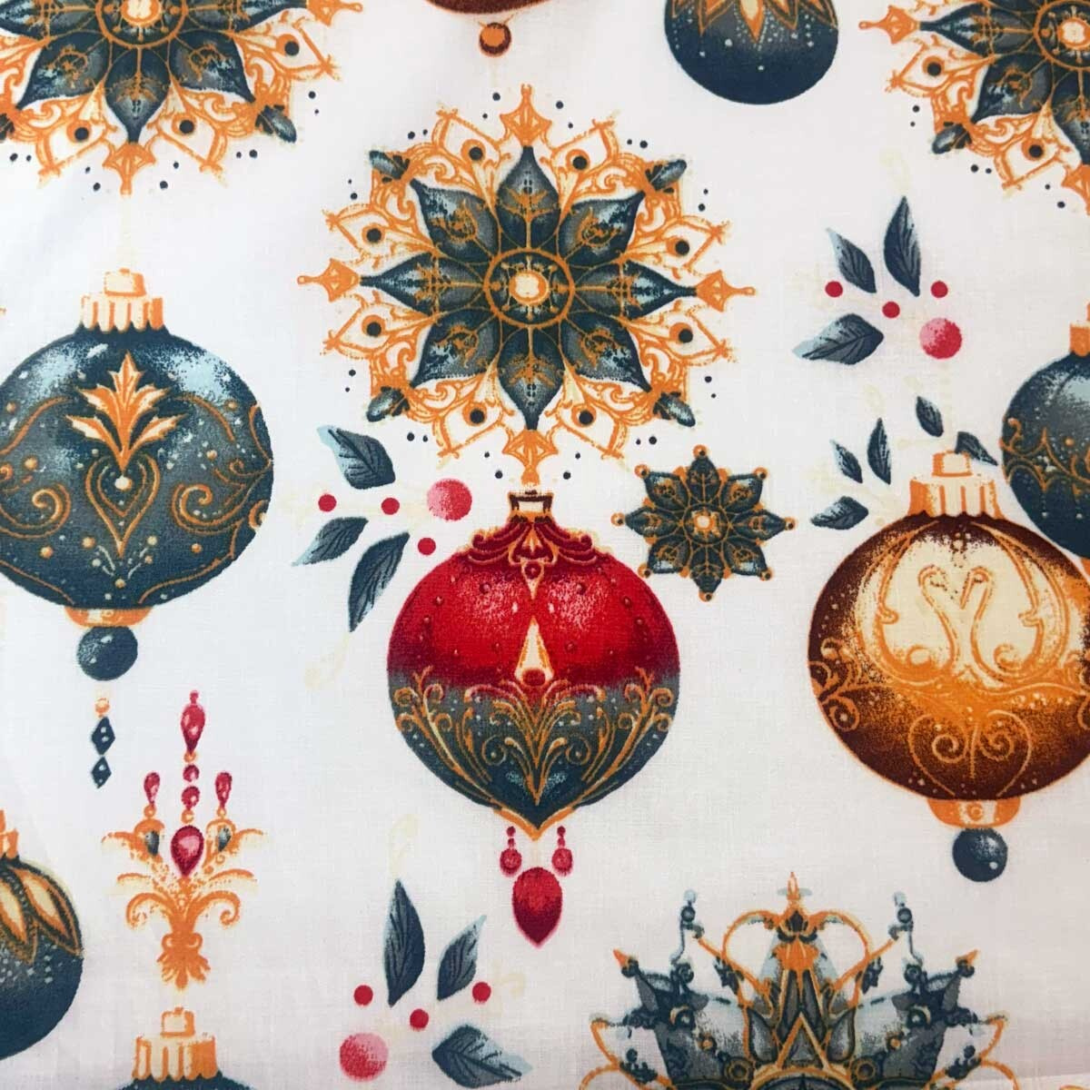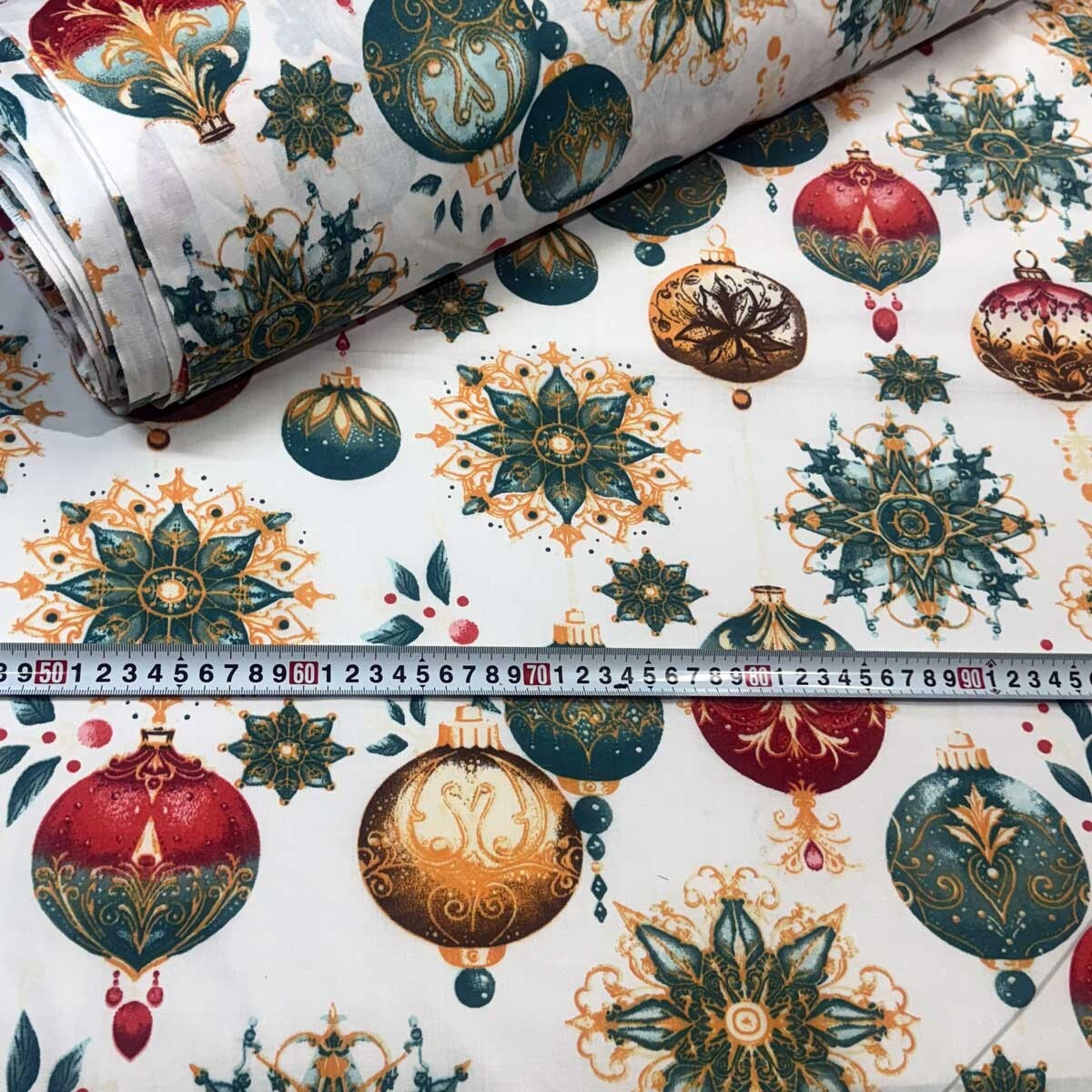 Táto látka je oživená krásnym vianočným vzorom, ktorý pridá čaro sviatkov k akémukoľvek projektu. Je to skvelá voľba pre výrobu obliečok, obrusov, závesov, ubrusov, domácich dekorácií a ďalších ručne vyrábaných výrobkov.