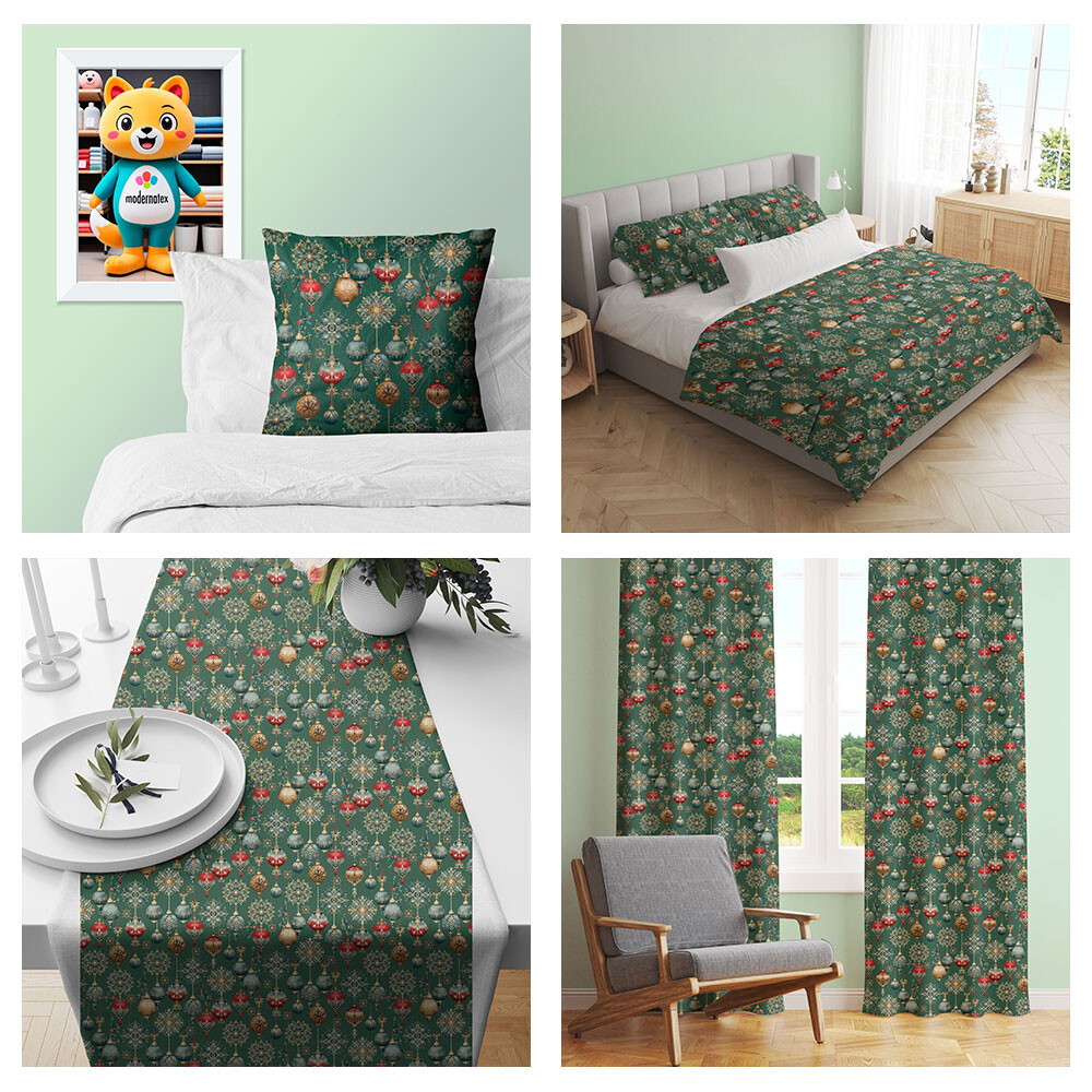 Táto látka je oživená krásnym vianočným vzorom, ktorý pridá čaro sviatkov k akémukoľvek projektu. Je to skvelá voľba pre výrobu obliečok, obrusov, závesov, ubrusov, domácich dekorácií a ďalších ručne vyrábaných výrobkov.