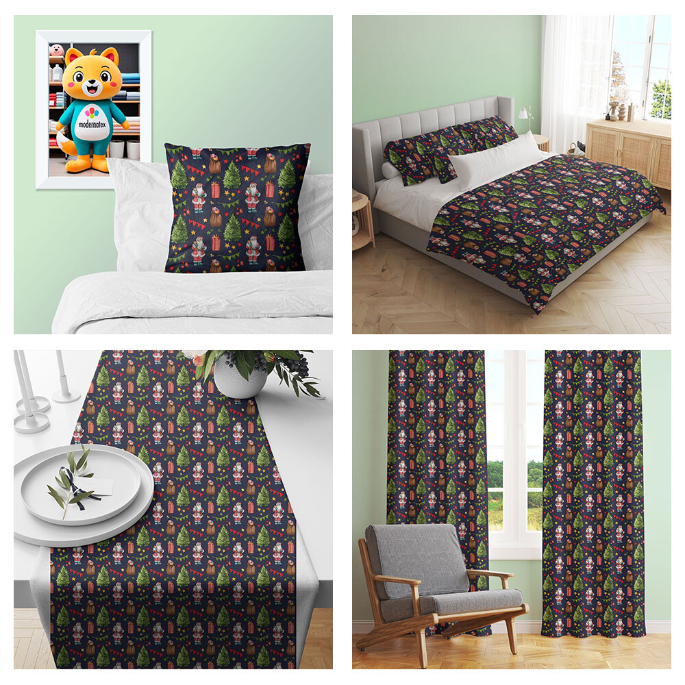 Táto látka je oživená krásnym vianočným vzorom, ktorý pridá čaro sviatkov k akémukoľvek projektu. Je to skvelá voľba pre výrobu obliečok, obrusov, závesov, ubrusov, domácich dekorácií a ďalších ručne vyrábaných výrobkov.