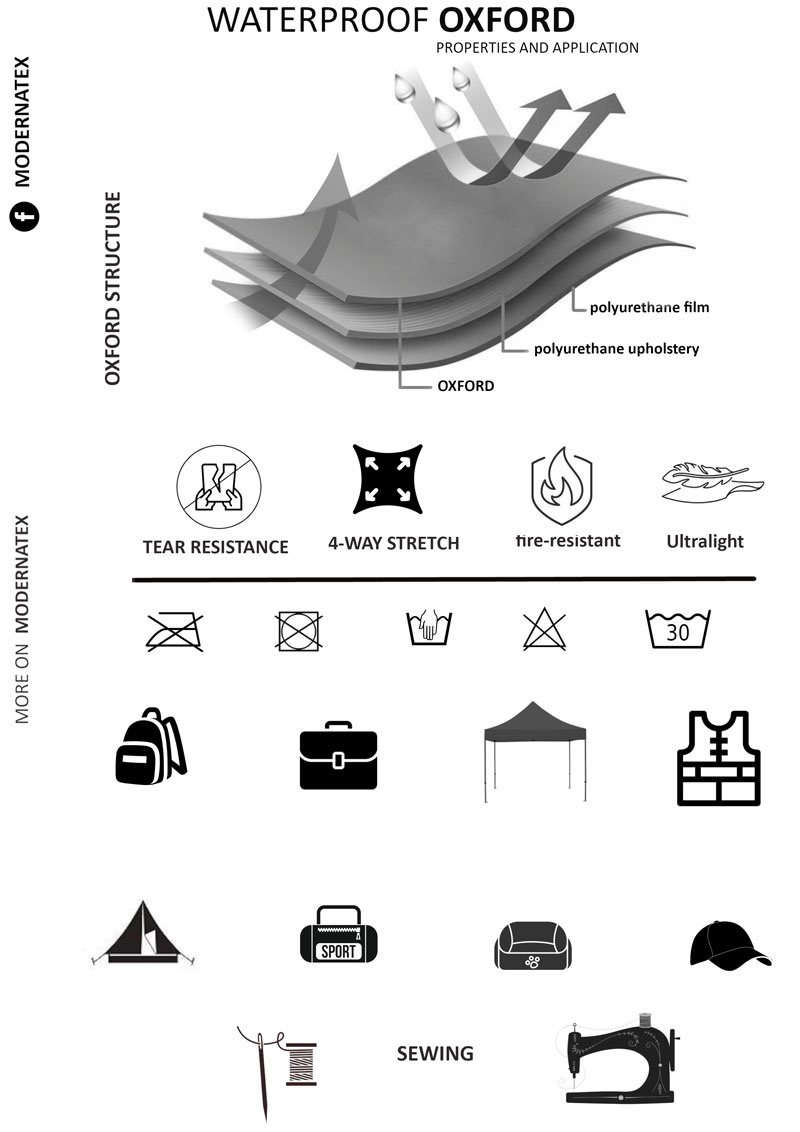 Oxford 1680D PU je extrémne odolná technická tkanina, ideálna pre použitie tam, kde sú požiadavky na mechanickú pevnosť, nepremokavosť a dlhodobú spoľahlivosť. Vďaka svojej konštrukcii a viacvrstvovej ochrane je vhodná pre profesionálov, nadšencov outdooru aj domáce využitie.