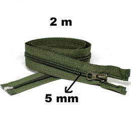 Zips špirálový, farba khaki 5 mm, dĺžka 200 cm